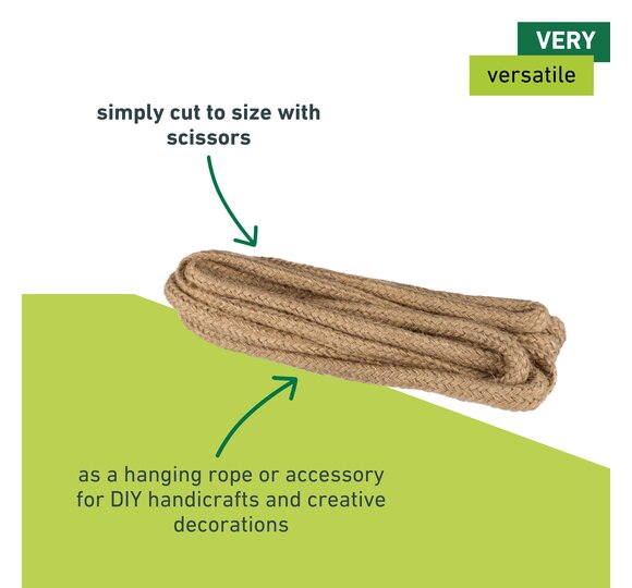 Spice up empty walls and dull rooms? This is a child's play with the natural-coloured jute rope! Whether as a hanging rope for plants or as a decorative material - there are no limits to creative minds.