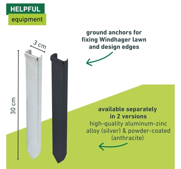 - HELPFUL EQUIPMENT - Ground anchor for fixing the Windhager lawn and landscape edging and the Windhager lawn edge strip