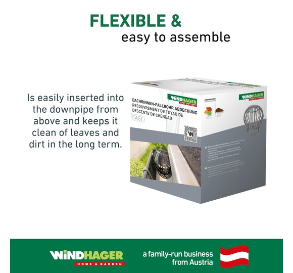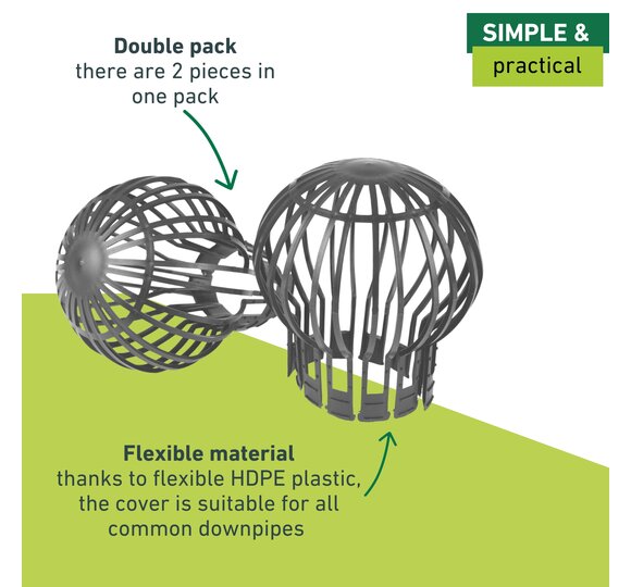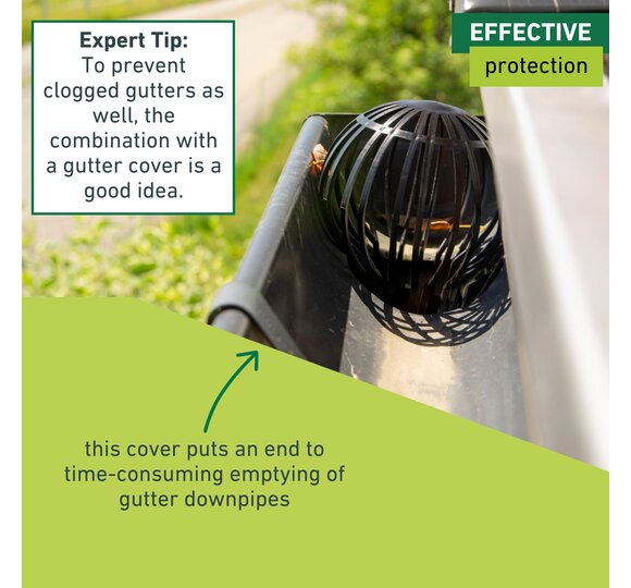 The cover is very easy to mount in the downpipe opening - no more effort needed. The flexible plastic material is weather-resistant. This effectively solves the issue and saves money and time.