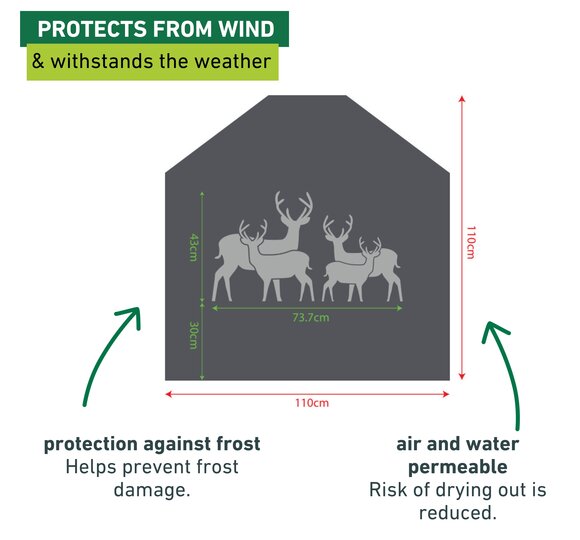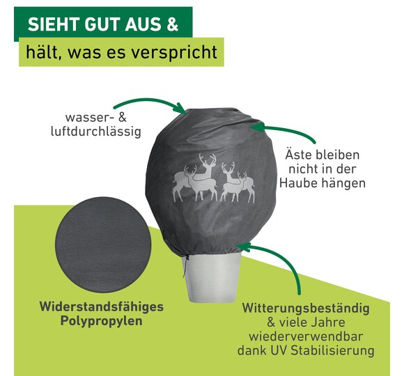 The hood is UV-stabilised, permeable to water and air and protects plants from drying out.