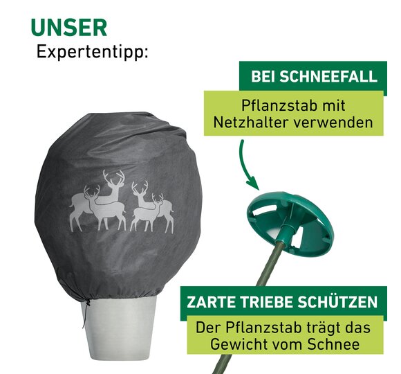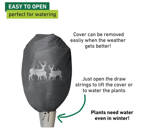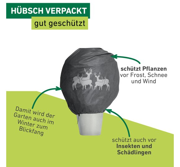 The nonwoven winter cover protects shrubs, tub and potted plants from frost, wind and snow. Often, however, the onset of winter comes unexpectedly and suddenly. Then all that matters is: the faster the plants are protected, the better. The cover is easy to position: simply put it over the crown of the plant. And the cover is just as easy and quick to attach - just pull the cord tight.