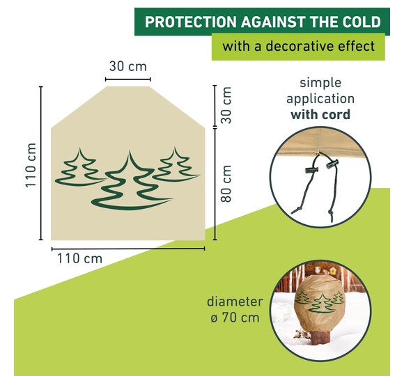 The cover has been designed in a pine tree motif to combat the tristesse of winter, giving your packed plants an ornamental touch.