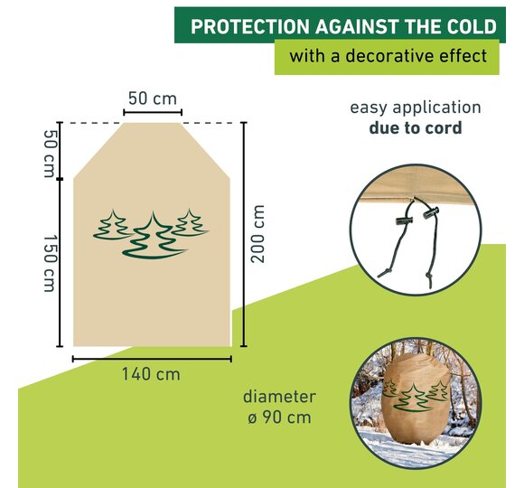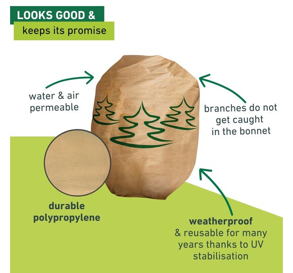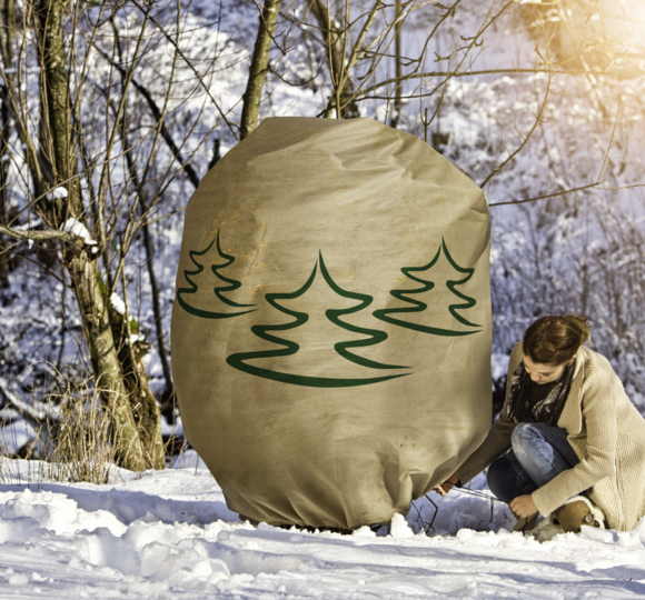 The cover has been designed in a pine tree motif to combat the tristesse of winter, giving your packed plants an ornamental touch.