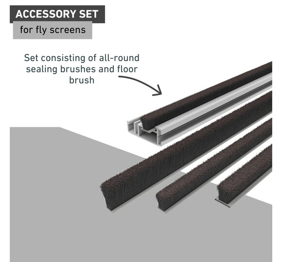 Maximise your insect protection with this specially designed sealing brush set. Consisting of all-round sealing brushes and a bottom brush, it enables easy installation in the insect screen profile of fly screen windows and doors. The set closes all gaps to the frame, the wall reveal and the floor without any gaps, thus preventing flying and crawling vermin from getting through. As the perfect addition to your Windhager EXPERT fly screen, it ensures a quiet and insect-free living experience.