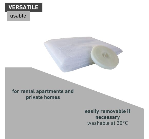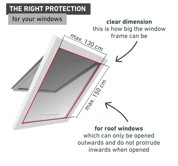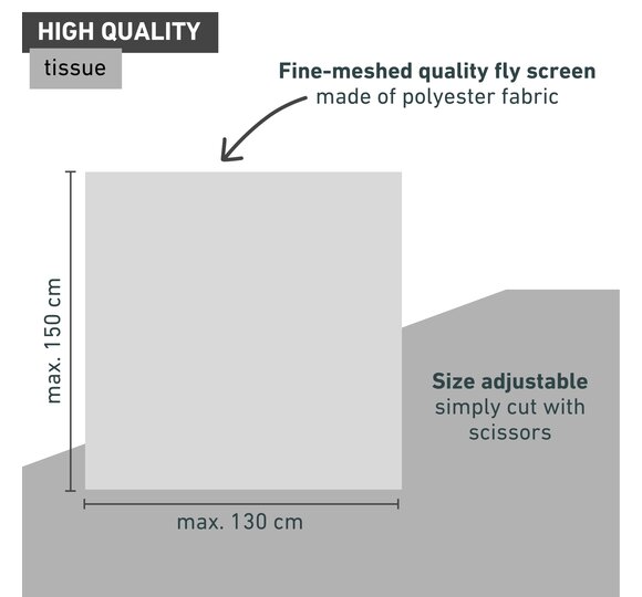 Fly screen with a zip to reach through – ideal for roof windows that can be opened, without letting swarms of gnats in. Lattice tulle made from polyester fabrics with self-adhesive Velcro strip and zip. Can be removed easily when needed and washed at 30°C.