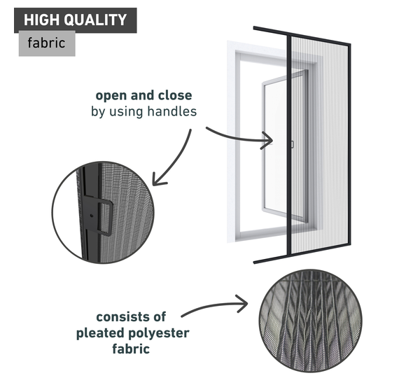One of the greatest strengths of pleated insect screen doors is that they can be installed without drilling. This innovative solution allows for quick and easy installation without causing permanent changes or damage to your door frames. Ideal for tenants or homeowners who want to organise their living spaces flexibly.