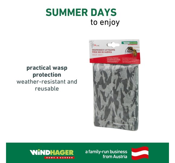 The dummy keeps wasps away, but does not drive away an existing nest. It is best to attach the WASP AWAY dummy already in spring. In order to keep the wasp nest dummy for as long as possible, it is advisable to attach it to a dry place. In addition, the dummy should be fastened with a short string so that it stays in place even in windy conditions.