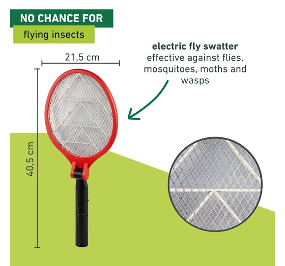 • ELECTRIC FLY SWATTER - Effective against flies, mosquitoes, moths and wasps