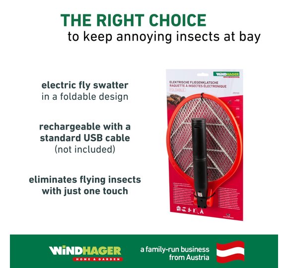 Flying insects such as flies, mosquitoes, moths and wasps can be quite annoying. They are mostly unwanted guests, especially in living rooms or while eating. With the ACCU COMFORT electric fly swatter, you will no longer have to chase them around waiting for them to land somewhere. The insects are killed with just one touch of the electrically operated fly swatter - without poisons and chemicals. The tension wire grid is electrically charged and gives a small electric shock when it comes into contact with an insect. The flying insects are killed immediately by this impact. The handle can be easily folded down. When folded, the fly swatter can be easily stowed away or taken along on the move. The fly swatter does not take up much space in the bag or backpack and is the perfect companion for fishing, camping and co.