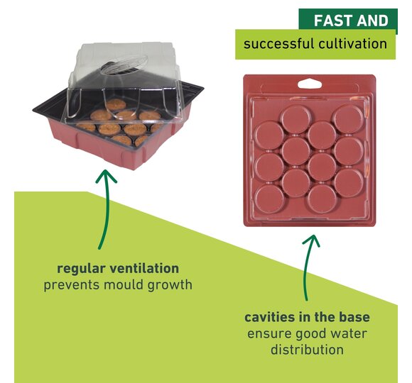 - PRACTICAL - Recesses in the base of the tray ensure good water distribution and an easy placement of the plants. There is space for approx. 12 seedlings.