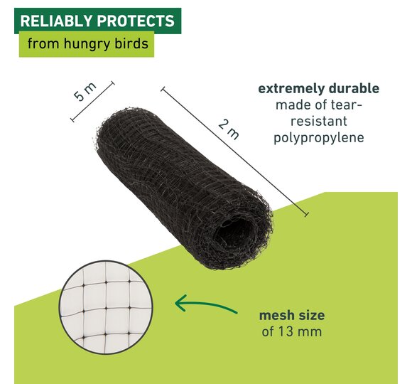 The high-quality, elastic net protects against damage caused by birds feeding.