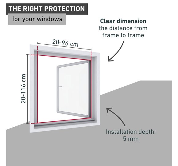 - VERY SPACE-SAVING - the fly screen requires only 5 mm of space and is suitable for windows up to max. 100x120 cm