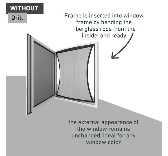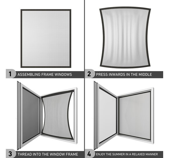- EXTREMELY EASY INSTALLATION - the frame is inserted into the window frame from the inside by bending the fibreglass rods, and that's it!