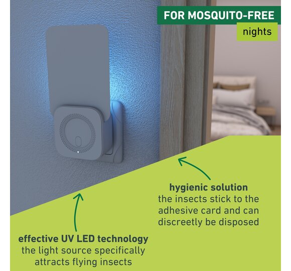 - MOSQUITO-FREE NIGHTS - Electric plug incl. 6 adhesive cards to catch mosquitoes, flies and moths