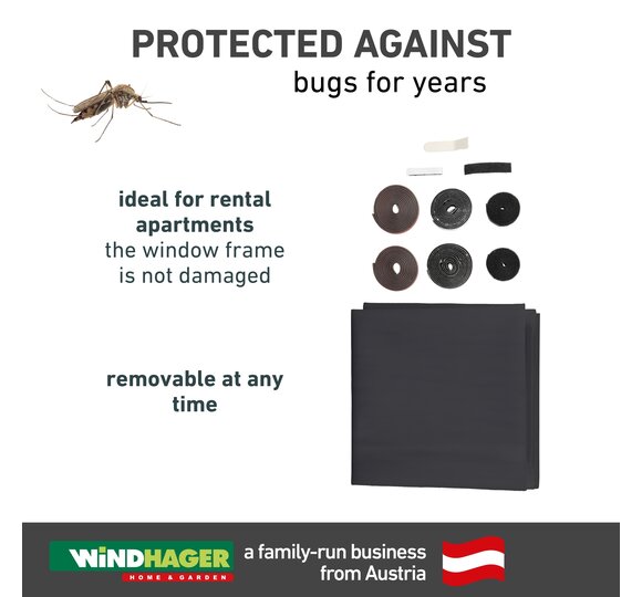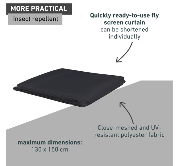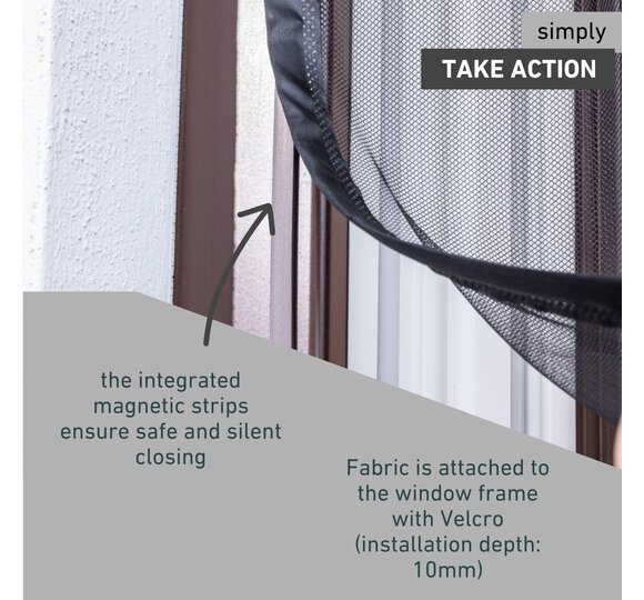 The insect screen fabric is made of close-meshed, UV-resistant polyester and prevents even small insects from entering your home. The integrated magnetic strips ensure that the curtain closes securely and silently. If required, the fabric can be shortened to fit a wide range of window sizes.
