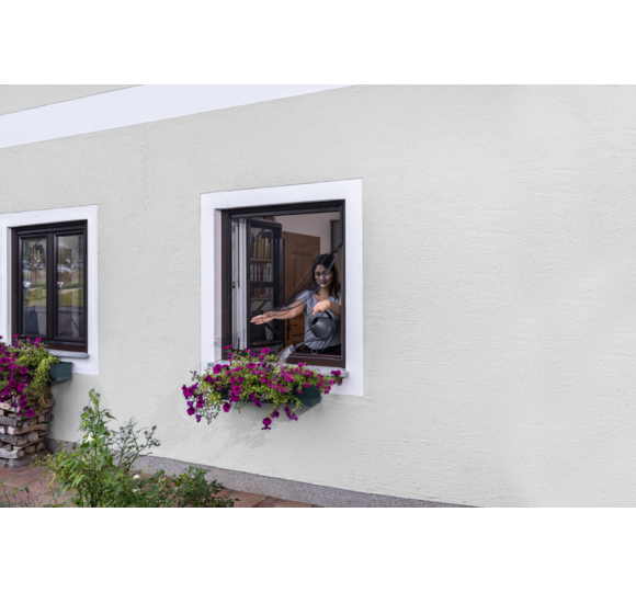With its very low installation depth of 10 mm, the window curtain does not take up much space. It is attached to the outer window frame with Velcro tape and is therefore easy to install - without drilling or screws. After the season, the Velcro tape can be opened and the curtain removed for the winter and cleaned if necessary.