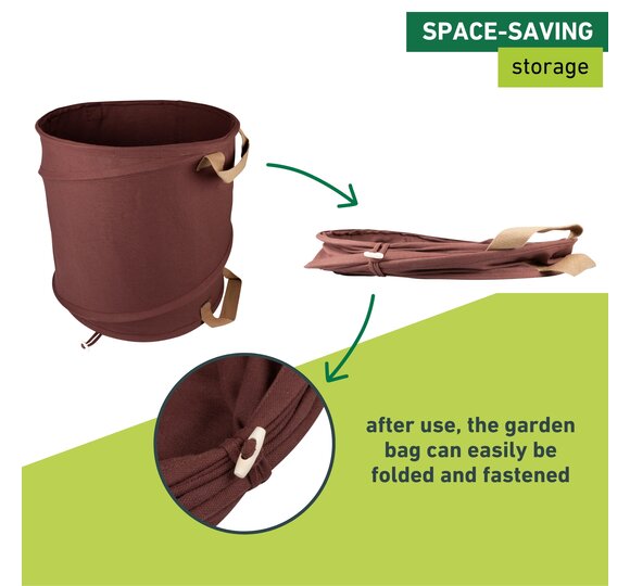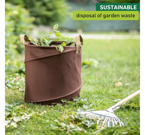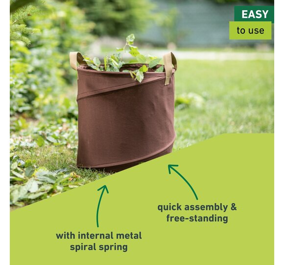 When working in the garden you often have your hands full - and having to hold up the rubbish bag is usually very inconvenient. That is why the canvas sack has a practical pop-up system and, thanks to the spiral, stands by itself so that branches and leaves can simply be thrown in.