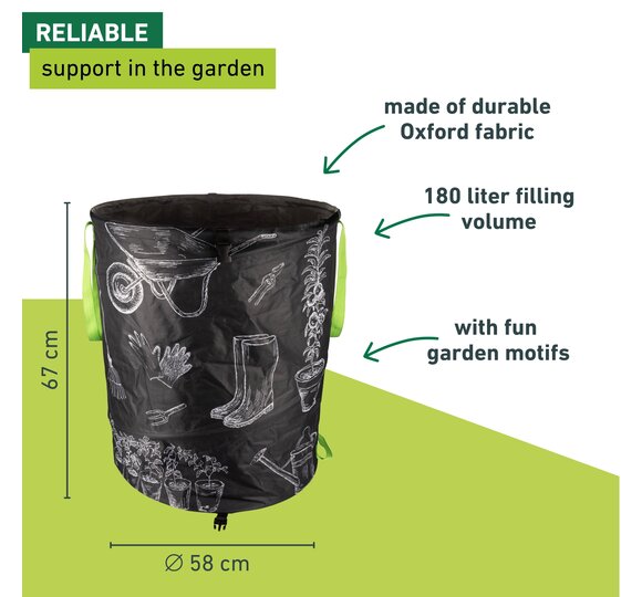 • EASY DISPOSE OF GARDEN WASTE - Sturdy garden waste bag with fun garden motifs and a large capacity of 180 litres