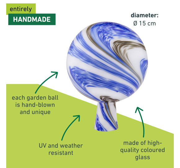 Please note: As the garden balls are entirely handmade, there may be slight variations in colour, unevenness and small air bubbles.