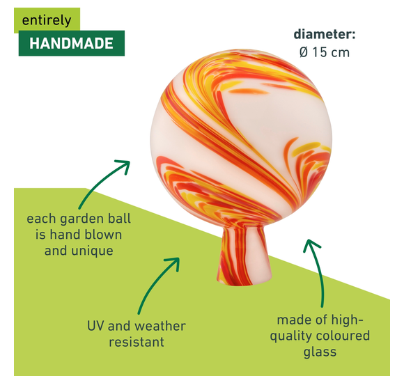 Please note: As the garden balls are entirely handmade, there may be slight variations in colour, unevenness and small air bubbles.