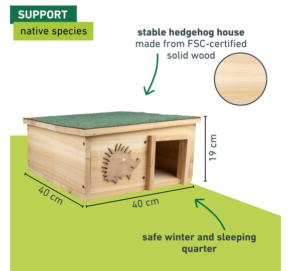 - ROBUST WINTER SHELTER FOR HEDGEHOGS - With the sturdy hedgehog house made of FSC-certified solid wood, you can offer the animals a safe winter shelter and sleeping area