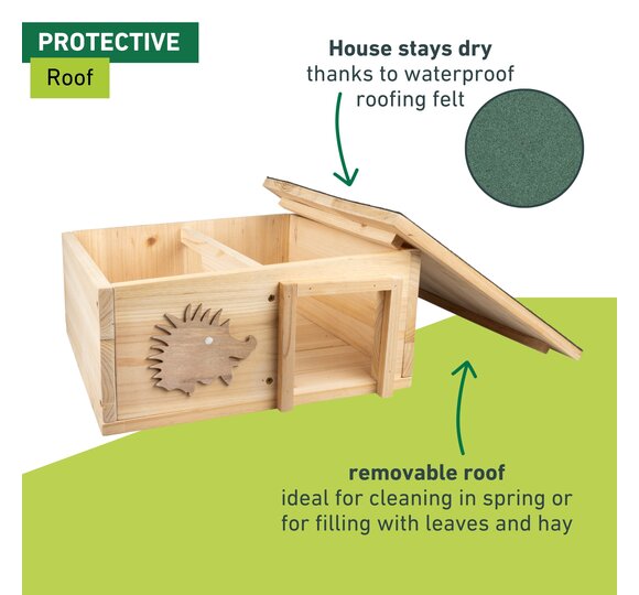 - PROTECTIVE ROOF - The waterproof roofing felt ensures that the hedgehog house stays dry