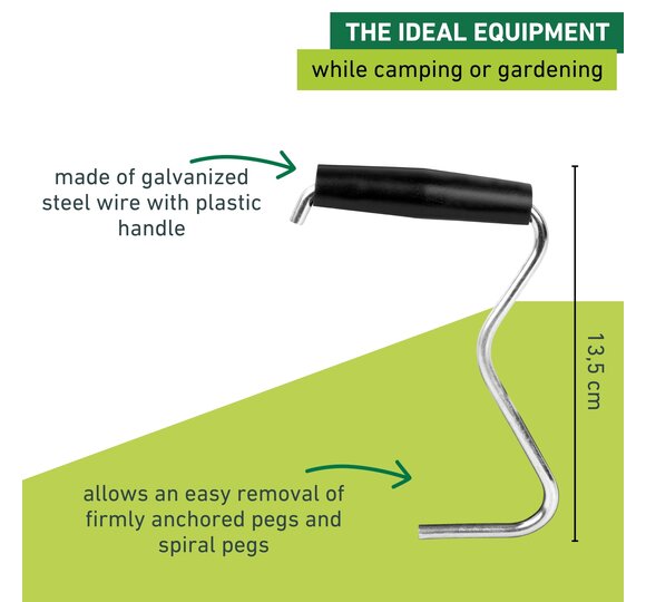 - DURABLE MATERIAL - The peg extractor is made of galvanised steel wire with a plastic handle