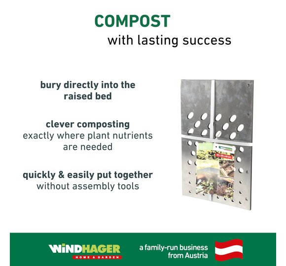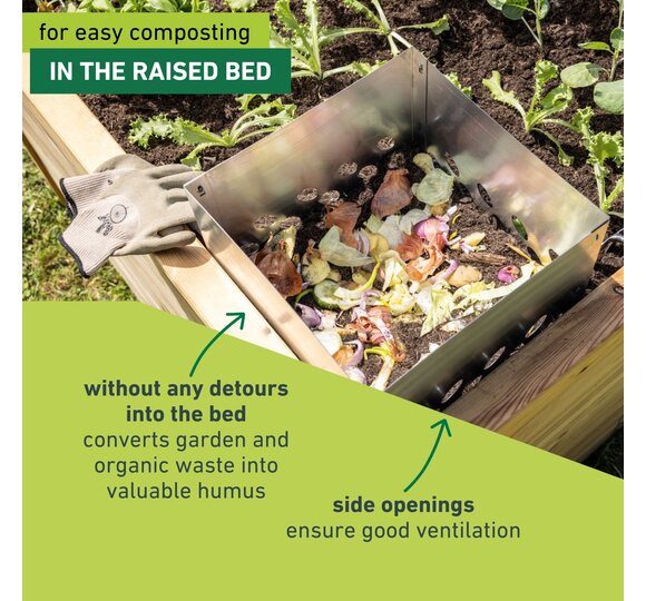 The practical raised bed composter is the ideal addition to any raised bed and makes composting directly on site a sustainable success. Valuable nutrients from organic waste are channelled directly into the soil exactly where they are needed. This promotes healthy plant growth and a bountiful harvest.