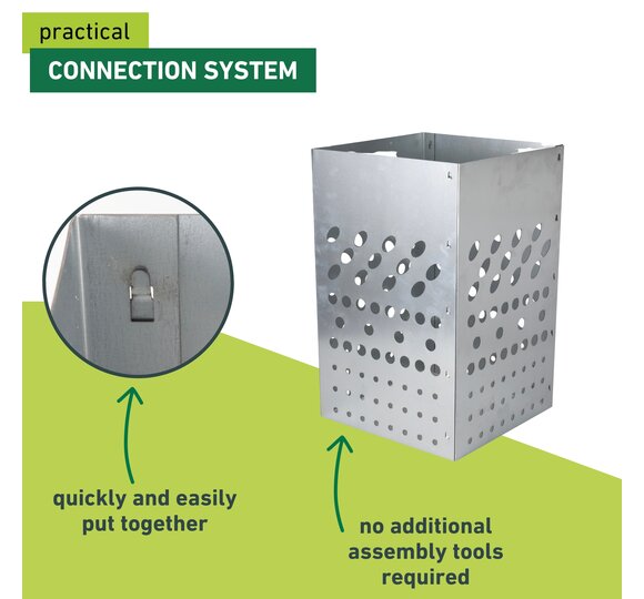 Made from galvanised steel, the raised bed composter is durable and weather-resistant. It can be assembled quickly and easily, so no additional assembly tools are required.