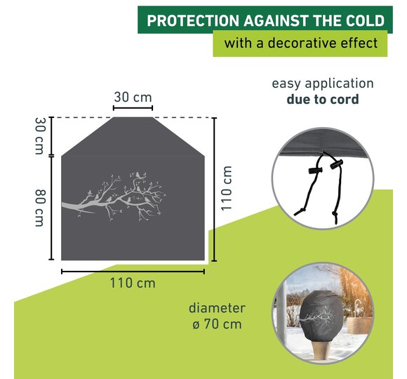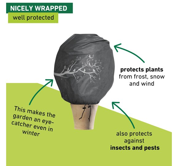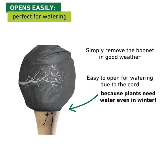 The nonwoven winter cover protects shrubs, tub and potted plants from frost, wind and snow. Often, however, the onset of winter comes unexpectedly and suddenly. Then all that matters is: the faster the plants are protected, the better. The cover is easy to position: simply put it over the crown of the plant. And the cover is just as easy and quick to attach - just pull the cord tight.