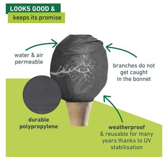 The hood is UV-stabilised, permeable to water and air and protects plants from drying out.