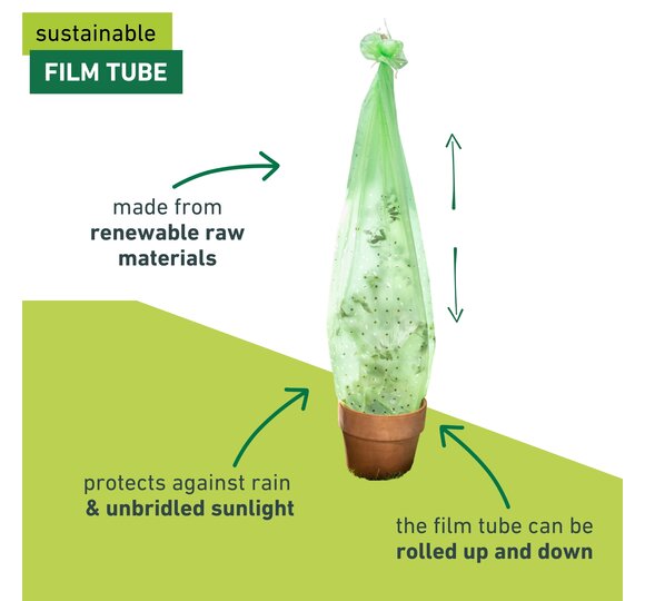 - WELL PROTECTED - The film tube protects the sensitive plants from the cold and, if necessary, from rain in the warmer months.