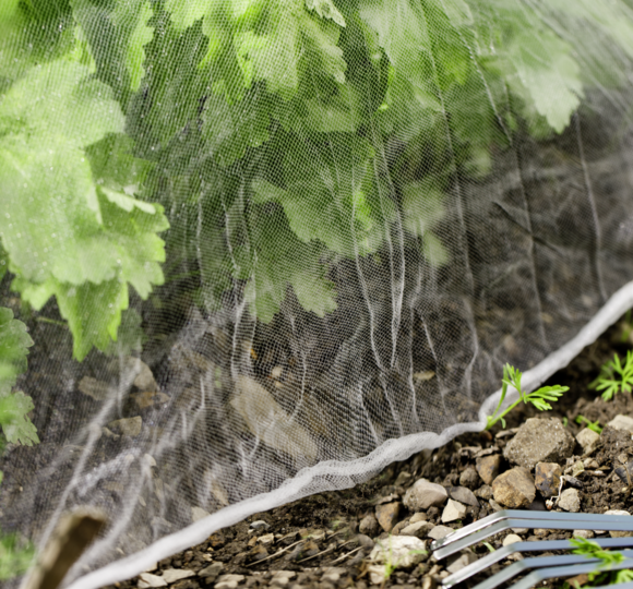 A fine-meshed net to protect fruit, vegetable plants and seeds etc against vegetable flies and other insects. It reduces the need for chemicals.