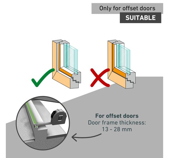 • STRUCTURAL REQUIREMENT – Suitable for offset doors with a frame thickness of 13–28 mm