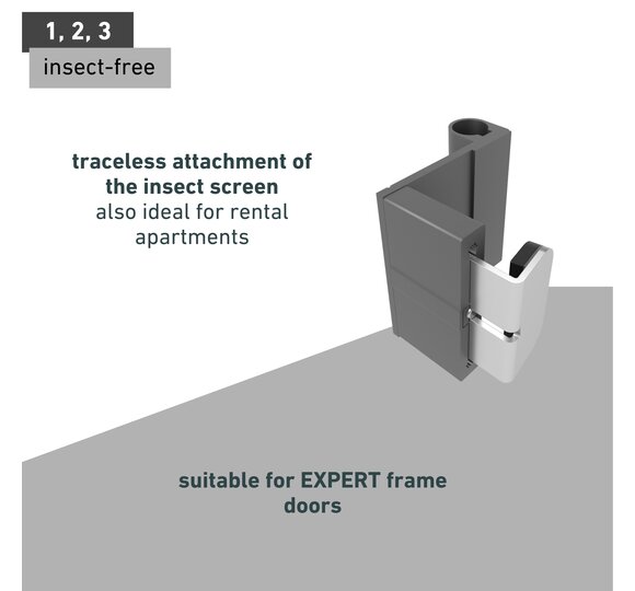 Leave your power drill in the tool box – you won’t need it to install the EXPERT framed door screen. The framed door screen is installed using the clamping adapter without damaging the door frame itself. Thanks to this, this innovation is not only well suited for rental flats but also for all those who don't want to damage their door frame.