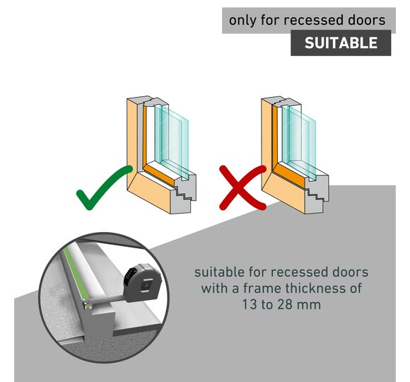 - Suitable for recessed doors with a blind frame thickness of 13 to 28 mm