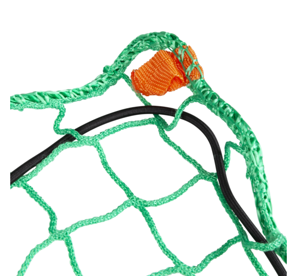 The net has colour-coded corner points - so there is no need for annoying guesswork as to whether the net belongs on the trailer. First look for these corner points. To attach the net, simply place it over the load, place the colour-coded corner points on the corners of the transporter, and then use the elastic cord to hook it onto the buttons on the side.