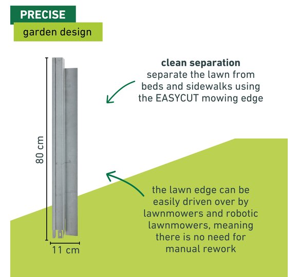 - PRECISE GARDEN DESIGN - Clean separation of the lawn from beds and walkways with the EASYCUT mowing edge