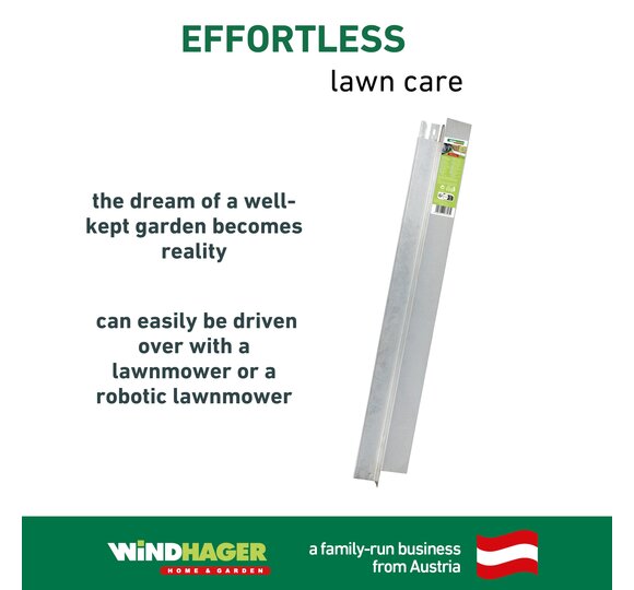 The EASYCUT mowing edge can be easily driven over by a lawn mower or robotic mower. The often tedious, manual reworking with a lawn trimmer is now a thing of the past.