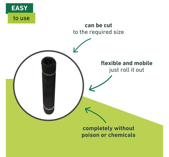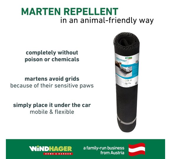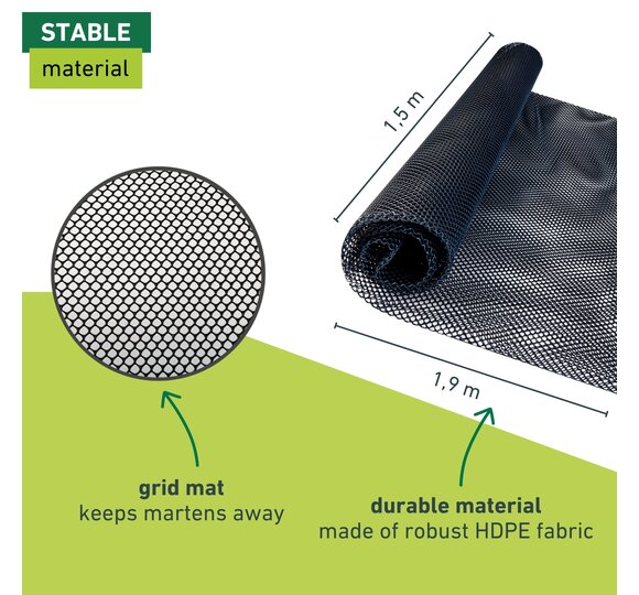 A marten having his way with your engine compartment at night can have unpopular consequences. Why not try the plastic grid mat, designed specifically for marten repelling from high-quality HDPE?