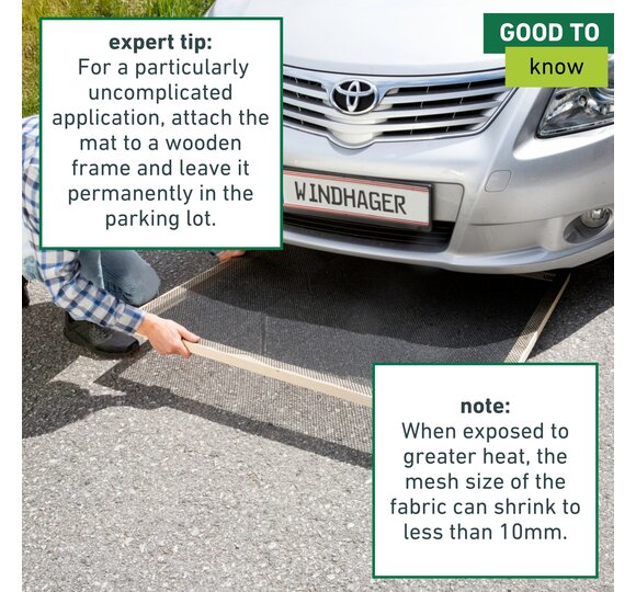 Lay it on the floor of the parking space of your car and position the front part of the car on the centre. The gentle method to repel hungry rodents is complete, as they don’t like walking on grid-like netting at all.