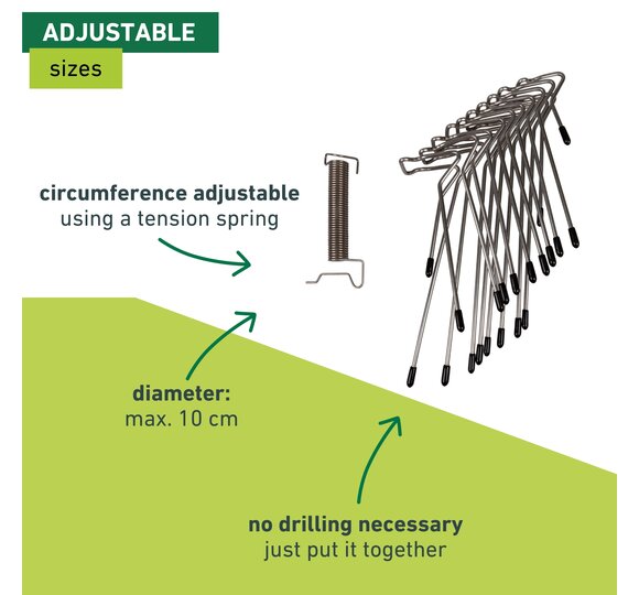 - ADJUSTABLE WITH TENSION SPRING - Fits downpipes with max. Ø 10 cm
