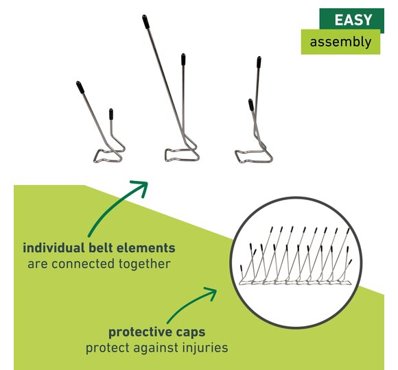 - ANIMAL-FRIENDLY DEFENSE - Spikes made of stainless steel, with plastic end caps to protect against injury