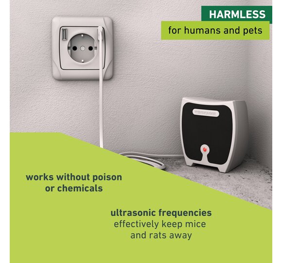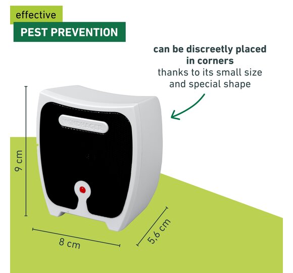 But that's not all: the device works without any toxins or chemicals, making it safe for people and pets. Its small size makes the ultrasonic repeller an inconspicuous pest control aid. It is also ideal for placing in corners.