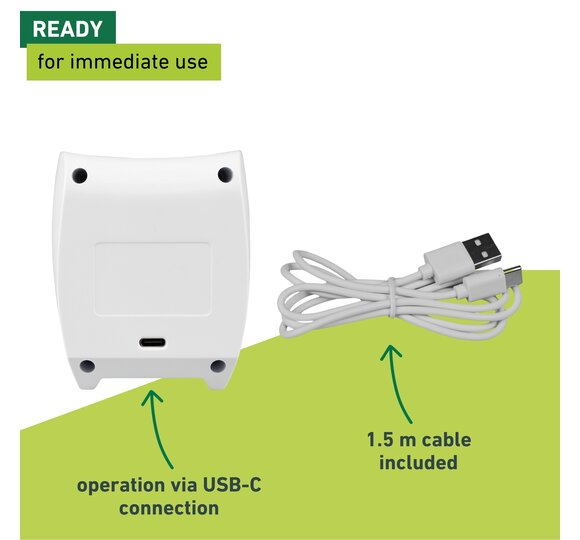 - READY FOR IMMEDIATE USE - Operation via USB-C connection, 1.5 m cable included in the scope of delivery