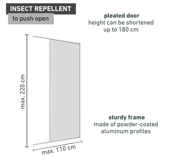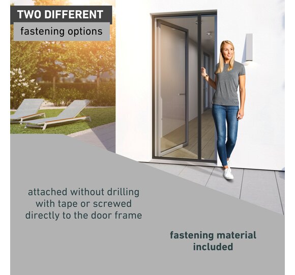 - SUSPENSION INSECT PROTECTION - Perfect for passages on balconies and terraces. The space-saving pleated fly screen door can be attached without screws.