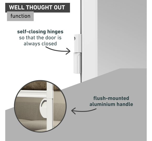 Optimise the protection of your home against unwanted insects with our made-to-measure insect screen doors. Whether framed doors, pleated doors, sliding doors or roller shutter doors - our wide range is customised according to your wishes and the exact dimensions of your doors. These customised solutions allow you to ventilate your home efficiently without letting pesky insects in. Our customised insect screen doors combine functionality with aesthetics so that you enjoy not only effective but also stylish protection.