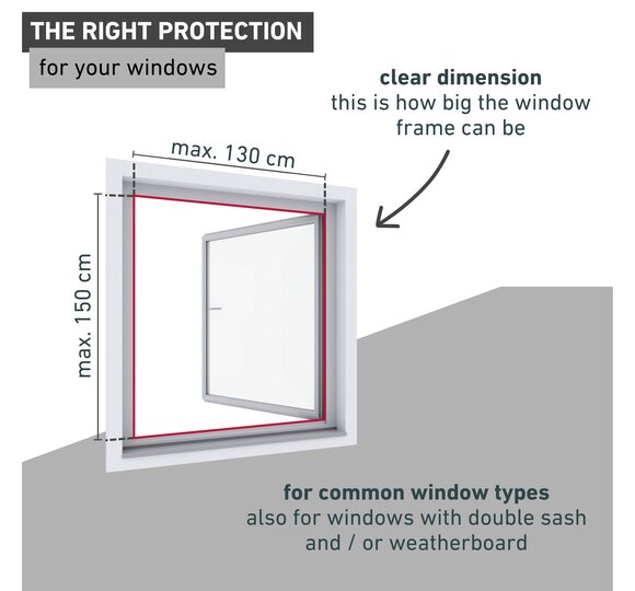 A tried and tested, simple solution when it comes to keeping your home insect-free. Especially recommended for windows with double sashes or weatherboarding. Installed in a matter of minutes, it reliably and permanently protects your family from annoying buzzing and painful bites. Can be removed easily when needed and washed at 30°C.