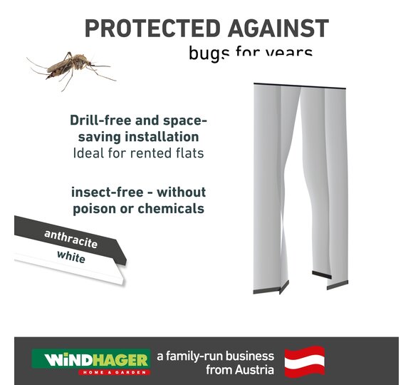 This insect screen that can be removed easily is ideal for rented flats. The lamella curtain is being stuck onto the door frame and thus can be used immediately - no need for drilling or screws. When the season is over, the Velcro strip can be undone and the door curtain can be cleaned (at 30°C), before putting it away for the winter.