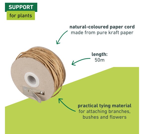 Branches, shrubs and flowers can be easily tied up to supports with the paper string and can therefore withstand wind and weather better.